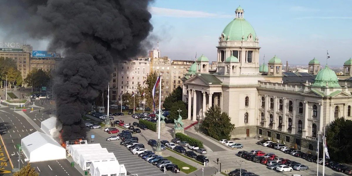 U jutarnjim časovima, ispred Narodne skupštine Srbije, došlo je do incidenta u kojem su zabilježeni pucnjava i požar u improvizovanom kampu poznatom kao „Ćacilend“.
